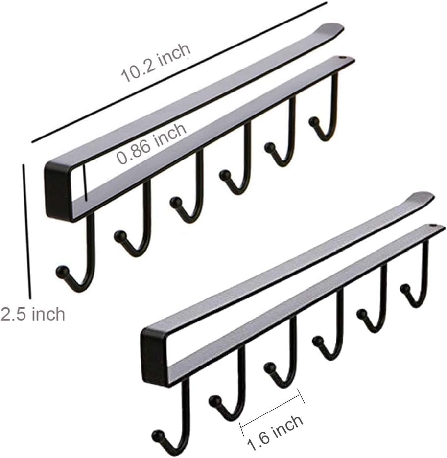 حامل أكواب معدني عملي مزود بـ 6 خطافات، مصمم لتنظيم المساحات داخل المطبخ أو الخزائن بسهولة دون الحاجة إلى مسامير أو حفر.